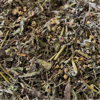 Inhalt: Himbeer- und Birkenblätter, Arnikablüten, Brennesselblätter, Weidenrinde, Zinnkraut, Hagebuttenschalen, Ackerbohnen- und Erbsenflocken