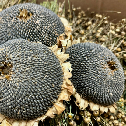 2 - 3 Sonnenblumenköpfe als gesunder Knabberspass und Zeitvertreib für diverse Nagetiere.